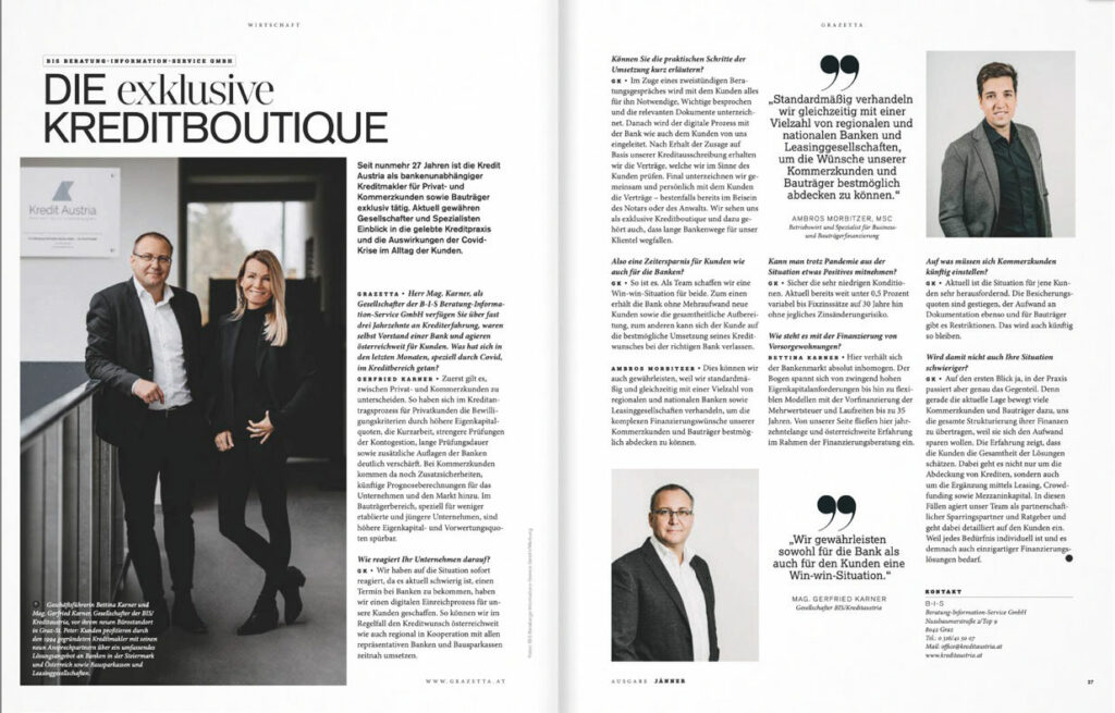 Durch die Auswirkungen der Covid-Krise sind sowohl für Privat- als auch für Businesskunden die Kriterien für die Bewilligung eines Kredits erheblich restriktiver geworden. „Im Kreditantragsprozess für Privatkunden haben sich die Bewilligungskriterien durch höhere Eigenkapitalquoten, die Kurzarbeit, strengere Prüfungen der Kontogestion sowie zusätzliche Auflagen der Banken deutlich verschärft“, weiß Mag. Gerfried Karner, Gesellschafter der B-I-S/Kredit Austria. Aber auch für Businesskunden wurden die Auflagen der Banken signifikant verschärft. „Hier kommen noch Zusatzsicherheiten, künftige Prognoseberechnungen für das Unternehmen und den Markt hinzu. Im Bauträgerbereich sind speziell für jüngere, weniger etablierte Unternehmen höhere Eigenkapital- und Vorverwertungsquoten spürbar“, so Gerfried Karner.